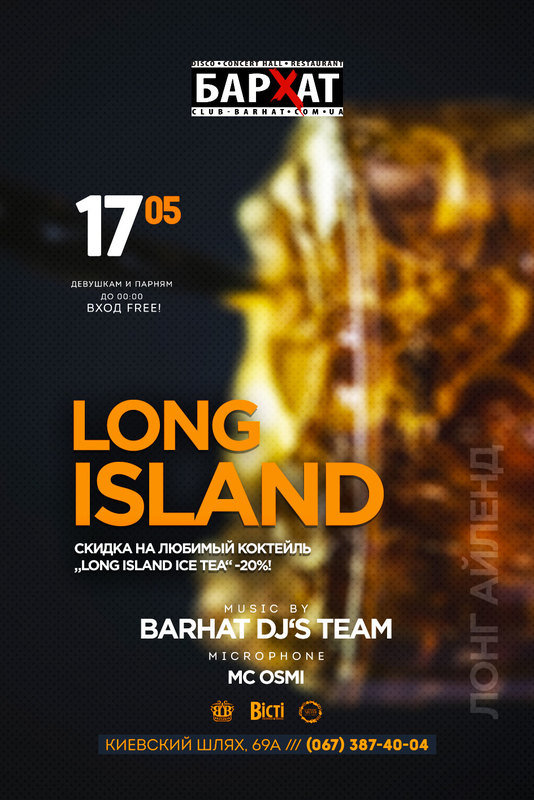 17 травня у розважальному комплексі “Бархат” відбудеться вечірка – Long Island NIGHT.